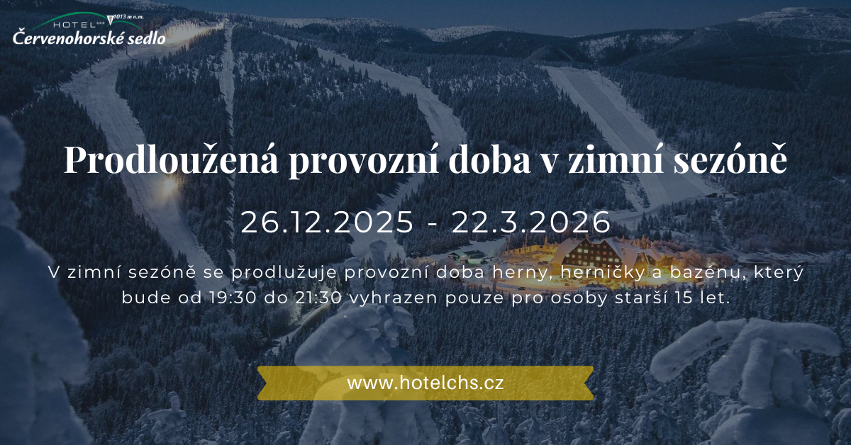 Zima klepe na dveře a my se již nemůžeme dočkat, až budeme moci přivítat první hosty po Štědrém dnu, kdy teplo domova vystřídá příjemné zázemí hotelu s poklidnou vánoční atmosférou. Věříme, že čas strávený zábavou a relaxací je během vaší dovolené to nejdůležitější a proto jsme se rozhodli během zimní sezony prodloužit otevírací dobu dětského koutku, herny a také bazénu.