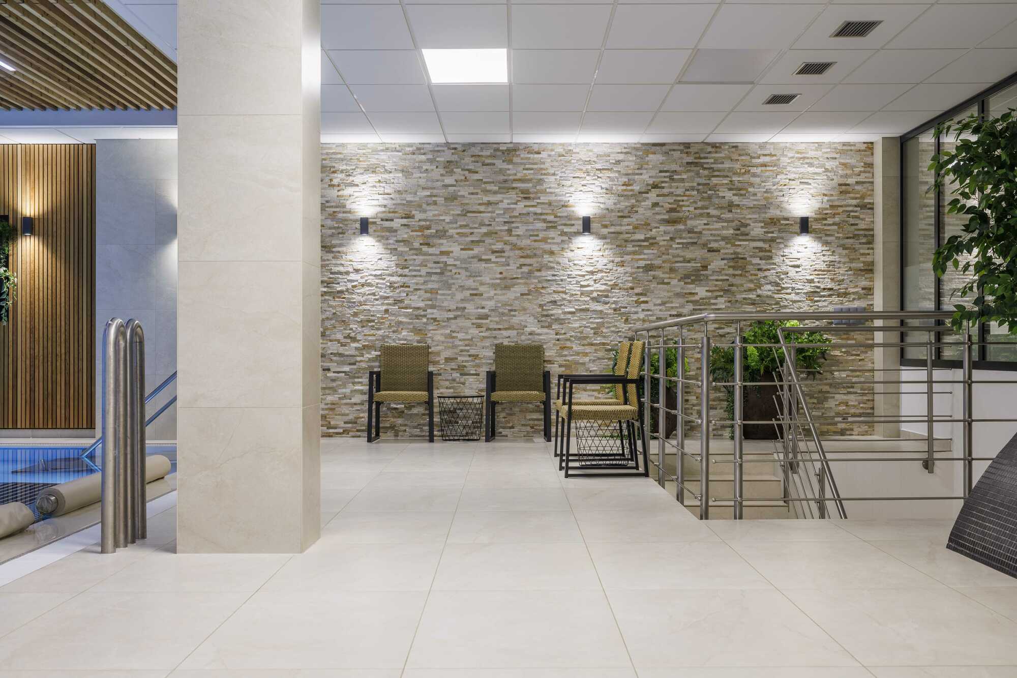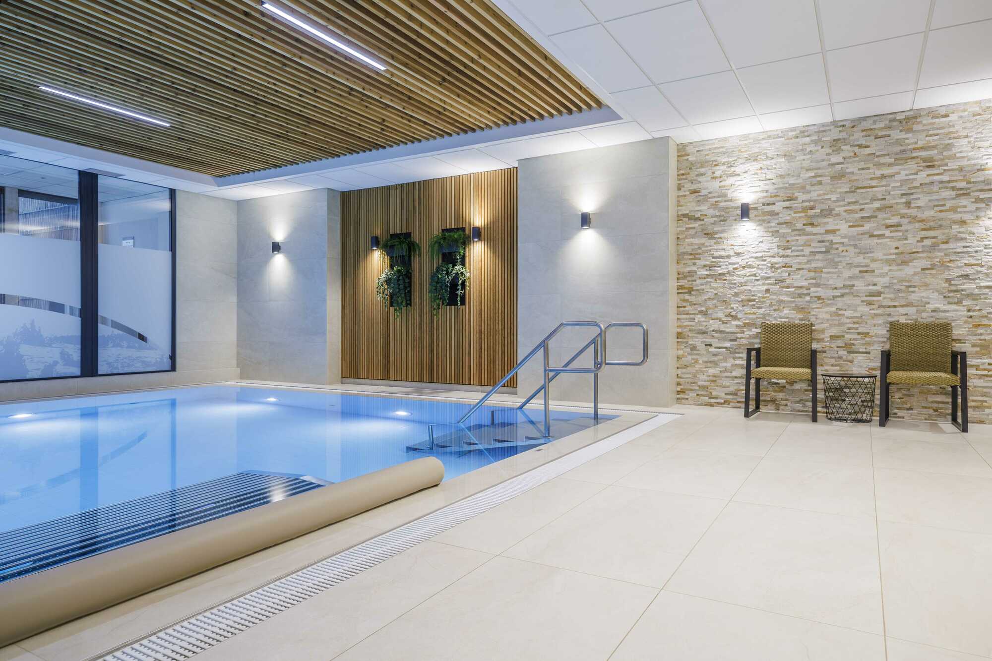 The pool area includes modern changing rooms and showers, lockers, and hairdryers, so you always have everything you need at hand.